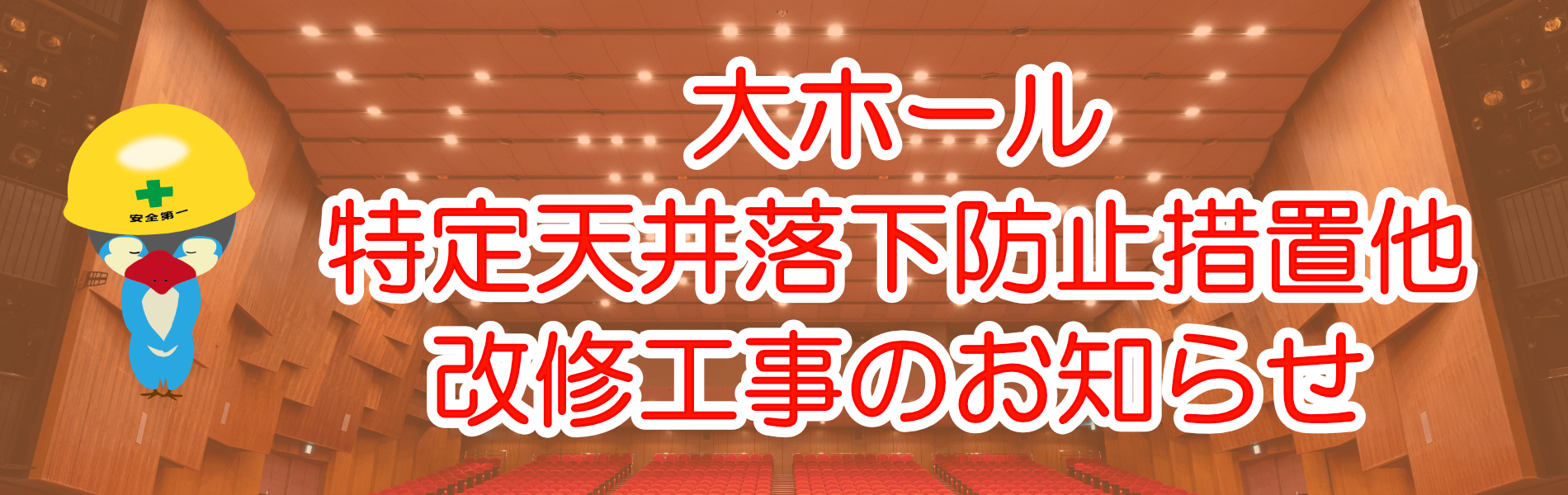 【重要】大ホール特定天井落下防止措置他、改修工事のおしらせNew!!