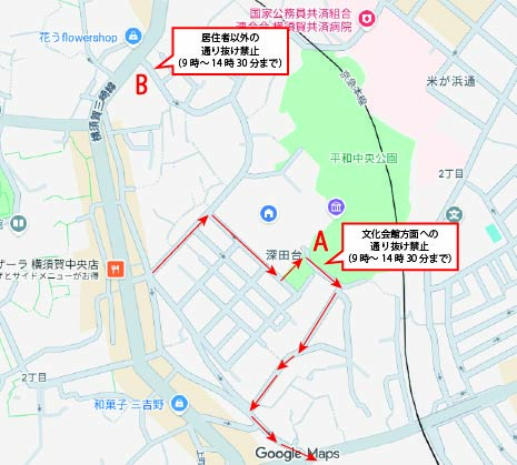 横須賀市文化会館 交通規制(周辺) 横須賀市文化会館 交通規制(広域)